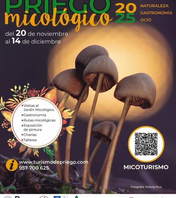 Con el objetivo de dar a conocer esta riqueza natural, desde el 20 de noviembre y hasta el 14 de diciembre, se celebrará la decimoquinta edición de Priego Micológico, con un amplio programa de actividades que incluye charlas, talleres, exposiciones pictóricas, rutas guiadas, salidas fotográficas y degustaciones gastronómicas elaboradas con setas en bares y restaurantes locales. Asimismo, durante estas semanas se ampliarán los días y horarios de apertura del Jardín Micológico y se invitará a los visitantes a recorrer el sendero micológico Enrique Triano, con salida desde el Centro de Visitantes de Santa Rita.